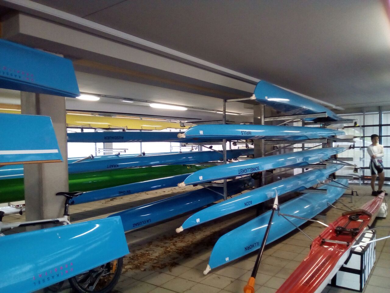 Das Erdgeschoss ist ein reines Bootslager, um möglichst viele Boote, Ruder und anderen Zubehör lagern zu können. Deshalb wird auf eine Werkstatt in diesem Bereich verzichtet. Größere Reparaturen werden in der Werkstatt des Sportzentrums der Universität durchgeführt.