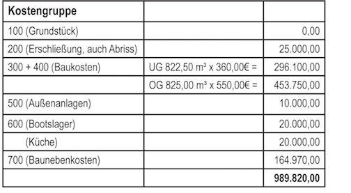 das scheint auf den ersten Blick sehr viel für das Gebäude. Die Budgetplanung ist von einem renommierten Architekturbüro so geschätzt, um eine Überziehung des Budgets zu verhindern bei nicht vorhersehbaren Mehrkosten. Allein die Brandschutzbestimmungen und die Vorkehrungen gegen Hochwasser sind sehr kostenintensiv.
